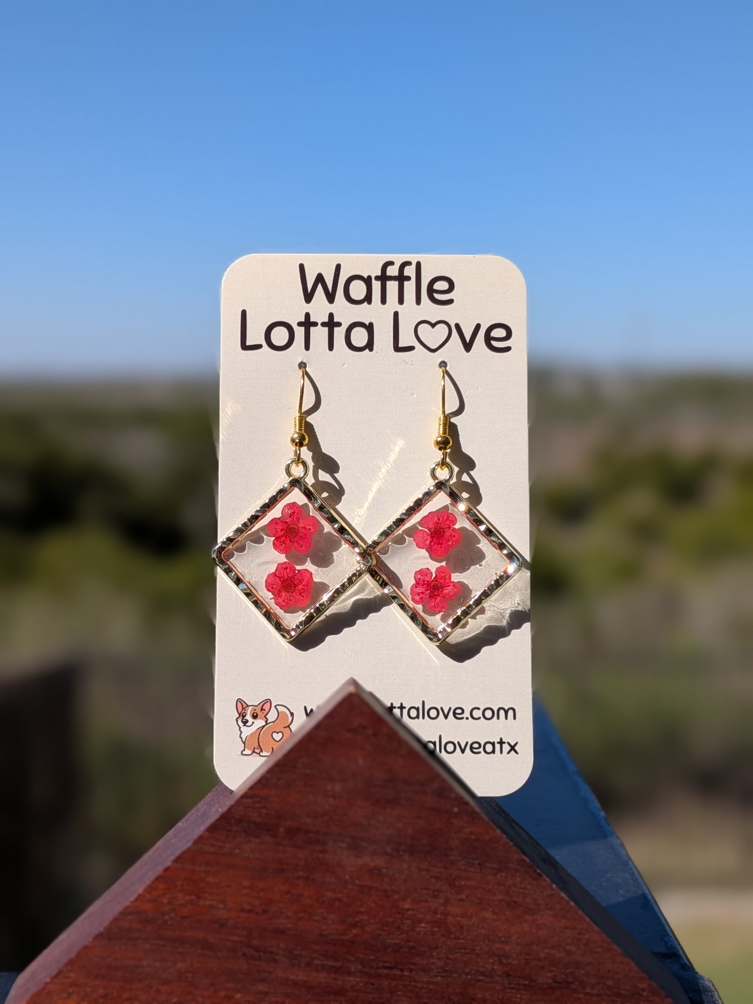 Welcome to Waffle Lotta Love! We craft handmade earrings that celebrate creativity, individuality, and nature. Made with real flowers and resin, each piece is lovingly created in Austin, TX. Inspired by Waffles, our Corgi and studio sidekick, we pour a waffle lotta love into every design.